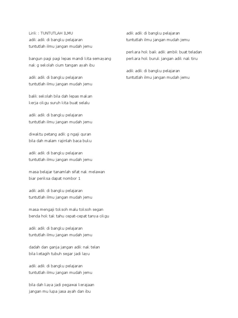Lirik Dikir Tuntutlah Ilmu Pdf